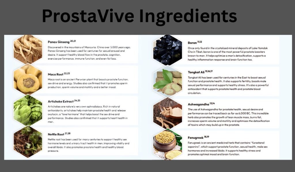 ProstaVive contains recognized herbs and nutrients with established safety and efficacy records. Ingredients such as Nettle Root, Ashwagandha, Zinc, and Ginseng are supported by clinical research.