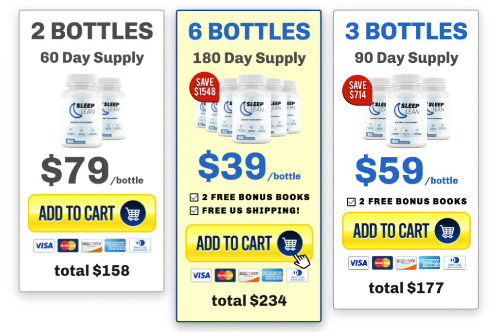 Per the sales page, Sleep Lean is manufactured in the USA from foreign and domestic ingredients. Packages are standardized: 1 bottle (30-day supply), 3 bottles (90-day), and 6 bottles (180-day). The 6-bottle option is the best value and lists free U.S. shipping. All purchases carry a 90-day money-back guarantee, which lowers buyer risk and matches the long-run nature of sleep-metabolism change.